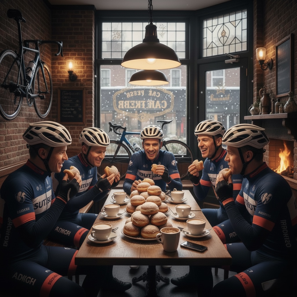 We vertrekken om 10:00 uur bij café het Hingen voor een ritje van om en nabij de 50Km. Rond 12:00 uur komen we aan bij café ’t Heukske in Sint-Joost, waar we met een borrel en/of oliebol het fietsjaar 2025 gezellig afsluiten.