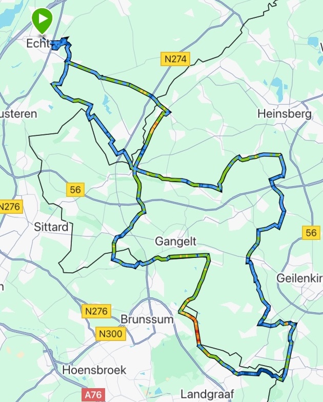 Wat is er te vertellen over deze rit? Niet veel. We hebben (toch) geen lek gehad, SUIST gedachte toegepast, er stond redelijk wat wind, voor de B renners een verdienstelijke gemiddelde van 30+ gereden en droog gehouden. En ja, met een kleine delegatie bij Nicole geland.